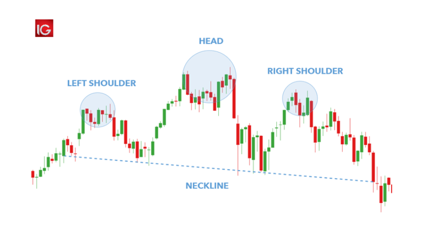 헤드엔 숄더(head and shoulders)는 세 개의 봉우리로 구성되는 하락세 전환 패턴을 말합니다. 숄도 부분의 양 사이드 봉우리는 대게 비슷한 금액대에 형성이 되며, 가운데 봉우리는 숄도 부분보다 높은 금액에 형성됩니다. 해당 패턴은 숄더 부분의 지지라인 밑으로 떨어질 때 패턴이 완성됩니다.