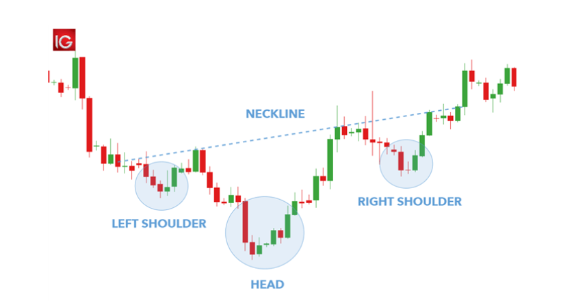 '역 헤드 엔 숄더'는 '헤드 엔 숄더'와 상반되는 패턴으로써 세 개의 봉우리가 형성 된 상승 전환 패턴을 말합니다. 숄더의 부분이 지지선으로 작용하며 숄더의 저항선을 돌파할 때 패턴이 완성됩니다.