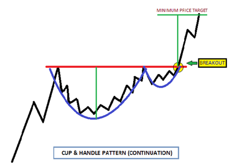컵핸들 패턴은 일반적으로 상승장에서 출몰합니다. 하락을 시작한 구간이 저항선으로 작용하며, 잠시 내려오는 듯한 모양새를 띄우지만 이어서 저항을 뚫고 상승하는 패턴을 말합니다. 일반적으로 컵핸들 패턴은 완성이 되기까지 상당한 시간이 소요됩니다. 하지만 상승시엔 큰 상으로 기다린 만큼의 보상을 기대해 볼 수 있습니다.