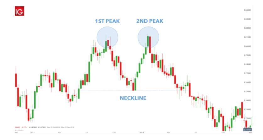 더블 탑 패턴은 해당 종목 가격이 고정에 두 번 도달했지만, 두 번째 고점 돌파를 실패하게 되어 하락세로 전환한 패턴입니다.