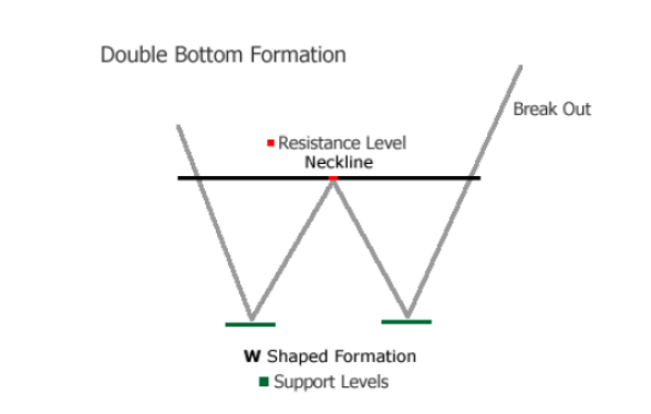더블 바텀은 해당 종목의 가격에 저점에 두 번 도달했으나 지지선에서 상승추세로 전환되는 패턴을 말합니다.
