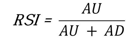 AU를 AD 값으로 나눈 것이 RS(Relative Strength) 값이며, RS 값이 크다는 것은 일정 기간 하락한 폭보다 상승한 폭이 더 크다는 것을 의미합니다. RSI 값은 'RS/(1+RS)'공식으로 구하며 'AU/(AU + AD)'로 해도 결과는 동일합니다.