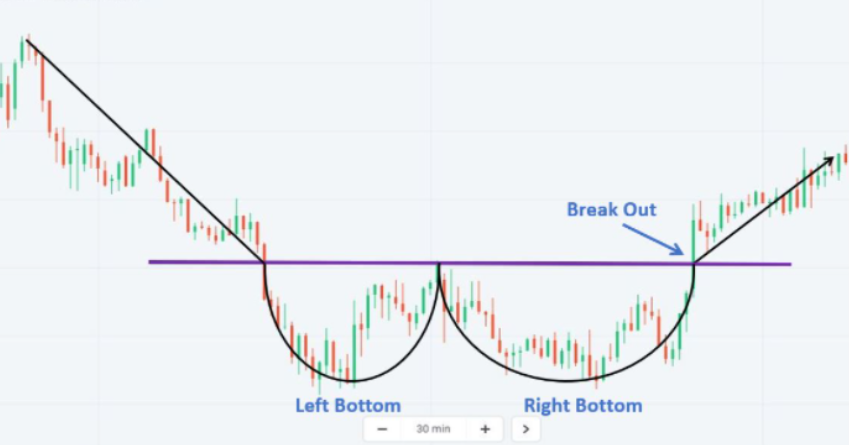 이것은 4가지 유형의 모든 패턴 중에서 최고의 정확도와 평균증가를 산출하는 패턴 유형입니다. 이 패턴은 2개의 둥근 U자형 바닥으로 구성됩니다.