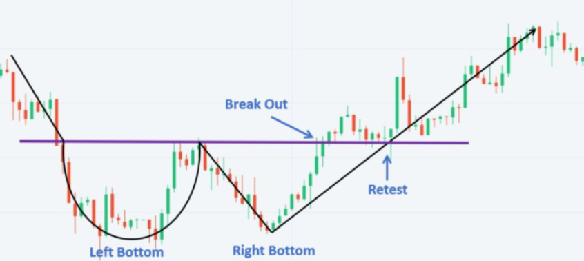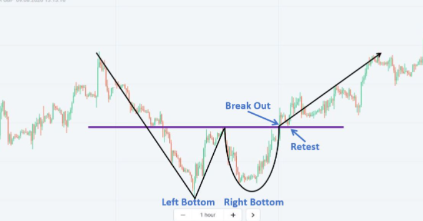 이 유형의 패턴은 뾰족한 V자형 왼쪽바닥과 둥근U자형 오른쪽 바닥으로 구성됩니다. 연구에 따르면 이것은 두 번째로 가장 정확한 패턴이며 4자기 유형의 더블 패턴 중 평균 증가율이 가장 높습니다.