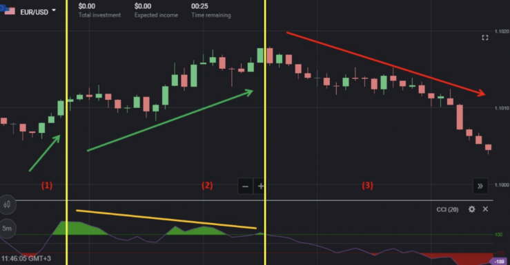CCI가 마이너스 또는 0에 가까운 영역에서 100이상으로 이동하면 가격이 새로운 상승 추세를 시작하고 있음을 나타낼 수 있습니다. 이러한 상황이 발생하면 거래자는 가격 하락 후 가격과 CCI가 모두 상승하여 구매 기회를 알릴 수 있습니다.
