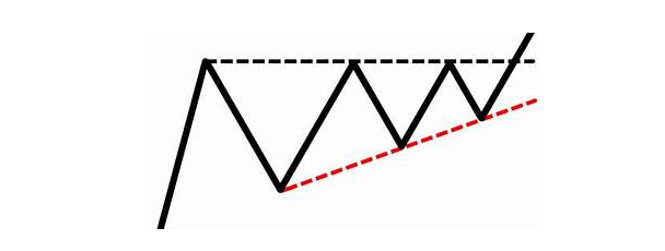 고점은 상대적으로 평평한 오버헤드 저항 수준을 나타냅니다. 저점은 추세가 지속됨에 따라서 점차적으로 더 높은 지지선으로 시장의 상승세를 보여주고 있습니다. 이 형태는 상단 추세선 부근에 저항선에 있을 경우 형성되는 상승 패턴이며 상단추세선 돌파 시 매수 포지션을 진입하는 경우입니다.