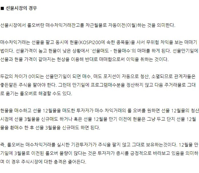 더불어 롱텀 포지션 선물을 보유하고 계신 투자자분들은 그들의 선물계약을 주기적으로 롤오버를 해야하기 때문입니다.