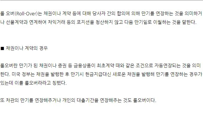 추가적으로 차관의 만기연장 또는 개인 대출기간연장도 롤오버라고 부르기도 합니다.