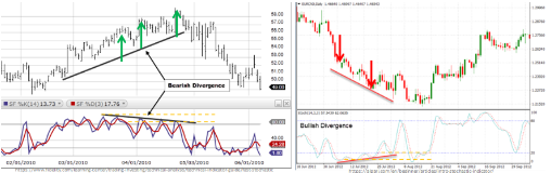 스토캐스틱 오실레이터와 주가 간의 다이버전스는