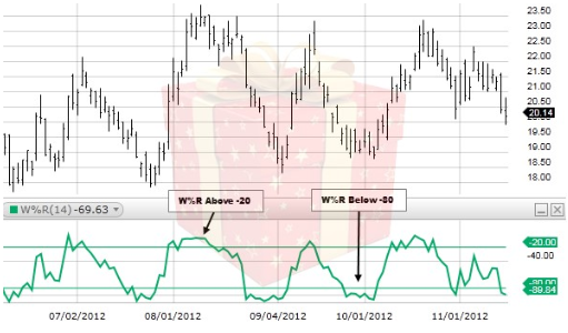 윌리엄스 %R은 매수와 매도 신호를 제공합니다.