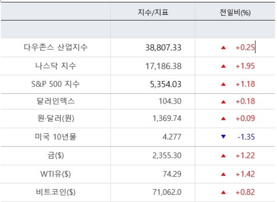 [특징주] ■ 대형주 애플(+0.78%), 테슬라(+0.13%), AMD(+3.86%), 메타(+3.79%), 마이크로소프트(+1.91%) 등이 상승했다.
